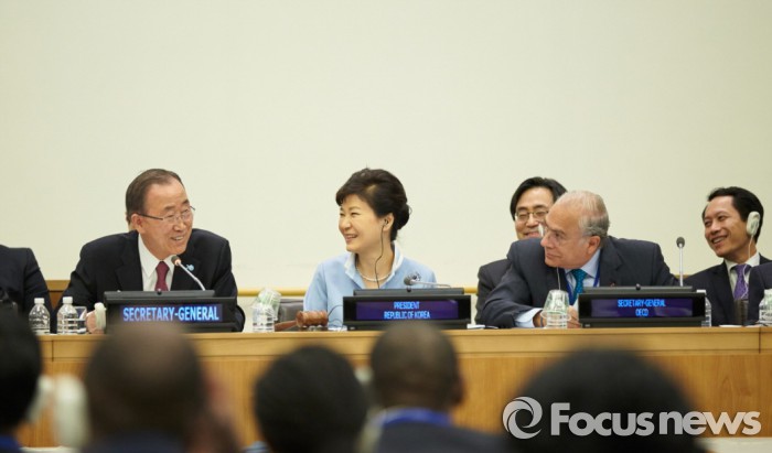 '대한민국을 따뜻하게 지구촌을 행복하게'라는 슬로건으로 진행된 이날 행사에서는 전북 덕진구의 읍면동 공동체 운동과 해외 시범마을인 라오스 학사이 마을 등이 우수 사례로 발표됐다.박근혜 대통령이 2015년 9월 26일(미국 현지시간) 오후 유엔본부에서 열린 새마을운동 고위급 특별행사에 참석해서 새마을운동의 글로벌 비전을 밝혔다. 2015.09.27. <사진출처=청와대>