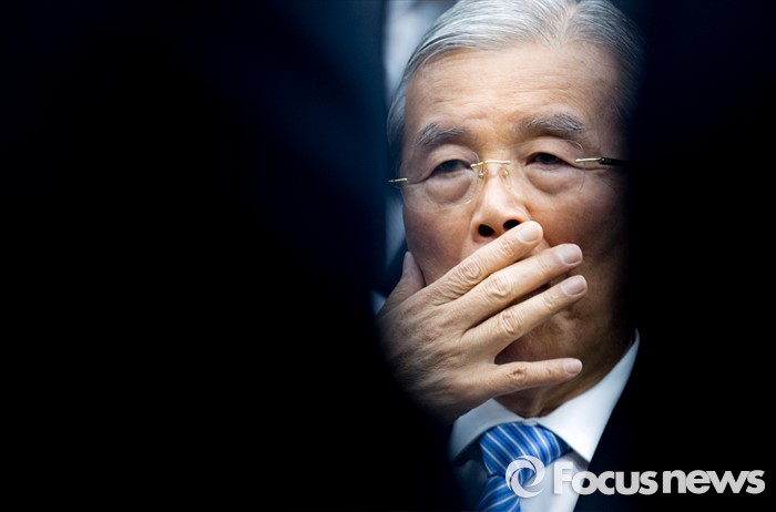 | △ 인사말 듣는 김종인 |