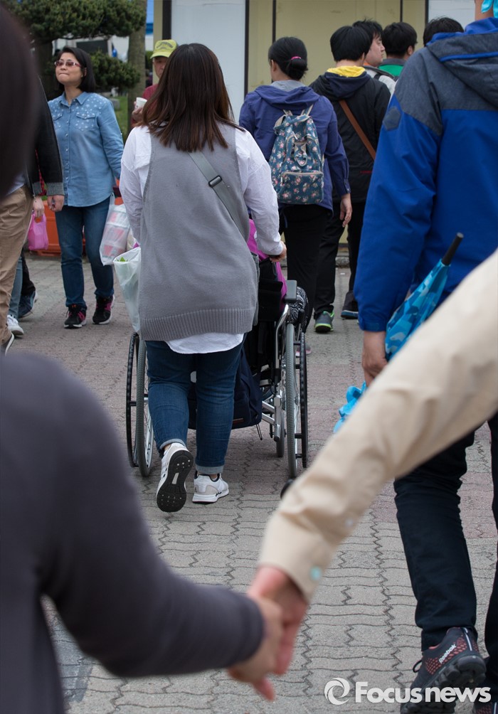 (청주=포커스뉴스) 20일 오후 충북 청주 올림픽국민생활관 일원에서 열린 제36회 장애인의 날 기념행사에서 참가자들이 거북이마라톤을 하고 있다.