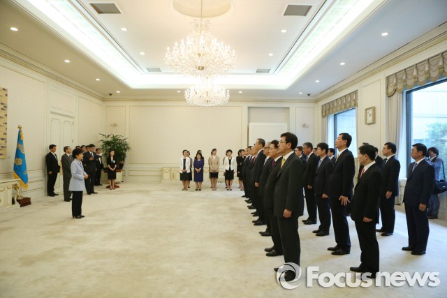(서울=포커스뉴스) 박근혜 대통령이 20일 신임 대사 15명에게 신임장과 임명장을 수여했다.