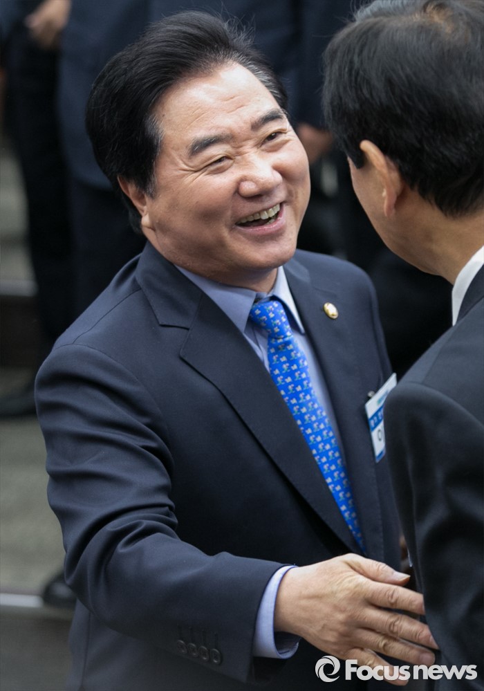 (서울=포커스뉴스) 20일 서울 여의도 국회에서 열린 더불어민주당 20대 총선 당선자 대회에 참석한 이석현 당선인이 동료 당선인과 대화하고 있다.