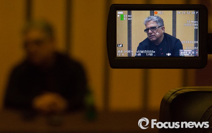 (서울=포커스뉴스) 토크쇼 여왕 오프라 윈프리와 팝가수 레이디가가, 마돈나의 정신적 지주이며 스승으로 알려진 하버드대 의학박사 디팍 초프라(Deepak Cfopra)가 20일 오후 서울 광진구 워커힐 호텔에서 열린 '2016 슈퍼 소울 릴레이' 힐링 콘서트 강연에 앞서 취재진 질문에 답변하고 있다.