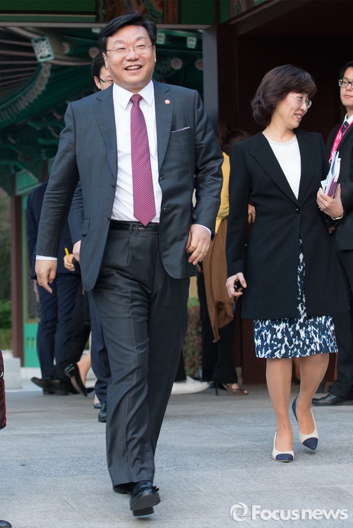 | △ 행사장 나서는 주형환 산업통상자원부 장관 |
