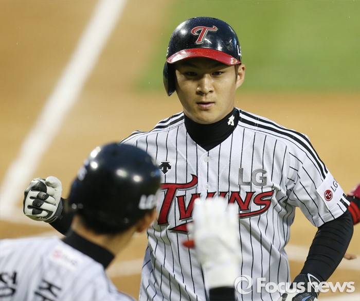 (서울=포커스뉴스) 20일 서울 잠실구장에서 열린 2016 프로야구 NC-LG 경기 2회말 2사 1,2루에서 LG 오지환이 우중월 3점 홈런을 치고 홈인하고 있다.