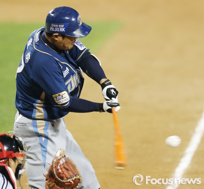 (서울=포커스뉴스) 20일 서울 잠실구장에서 열린 2016 프로야구 NC-LG 경기 6회초 1사 1루에서 NC 이호준이 우익수앞 안타를 치고 있다.