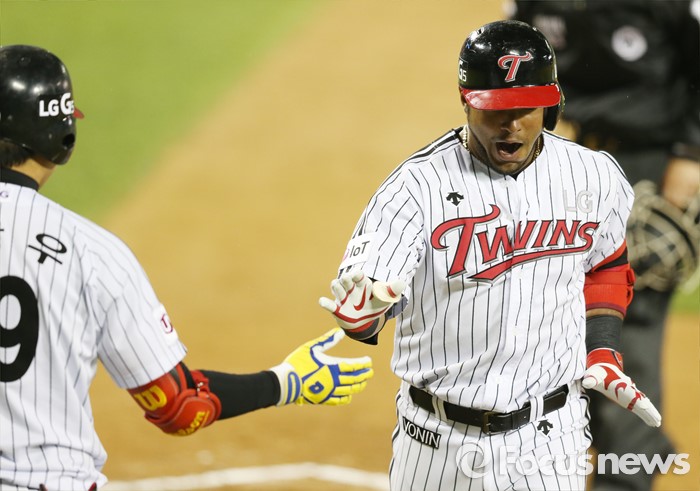 (서울=포커스뉴스) 20일 서울 잠실구장에서 열린 2016 프로야구 NC-LG 경기 8회말 1사후 LG 히메네스가 좌월 1점 홈런을 치고 홈인하고 있다.