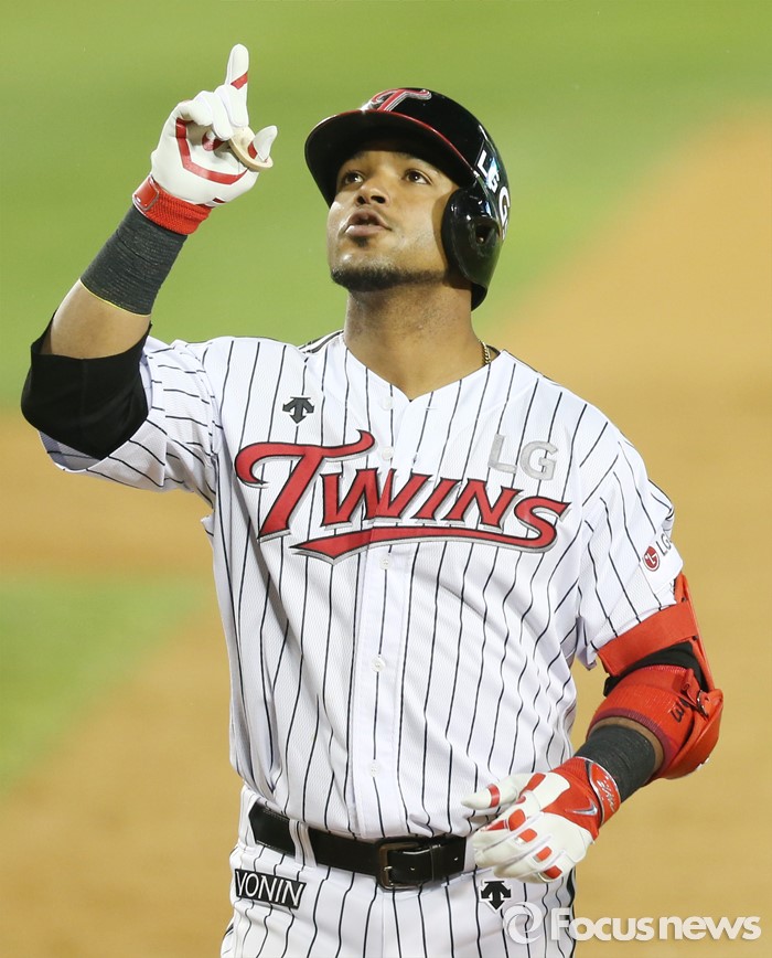 (서울=포커스뉴스) 20일 서울 잠실구장에서 열린 2016 프로야구 NC-LG 경기 8회말 1사후 LG 히메네스가 좌월 1점 홈런을 치고 홈인하며 세리머니를 하고 있다.