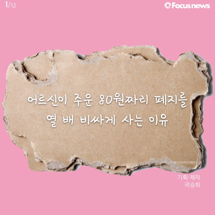 (서울=포커스뉴스) '러블리페이퍼'는 빈곤 노인층을 돕기 위해 시작된 프로젝트입니다. 이 프로젝트의 구성원들은 인천의 한 노인이 모아온 폐지를 약 10배 비싸게, 15kg을 만 원에 샀습니다. 현행 매매가는 1kg에 80원입니다.