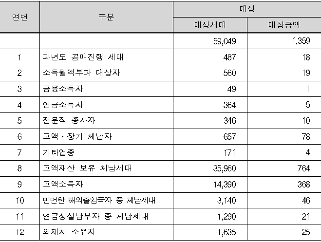 공단은 고액재산 보유자, 고액소득자, 외제차소유자, 외에도 빈번한 해외출입국자, 고액장기체납자 등 특별징수 대상기준을 12개 유형으로 확정하고, 이들을 대상으로 강제징수를 한층 강화할 방침이다.