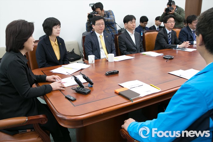 (서울=포커스뉴스) 심상정(왼쪽) 정의당 대표가 21일 오전 서울 여의도 국회에서 열린 상무위원회의에 참석해, 회의를 주재하며 모두발언하고 있다.