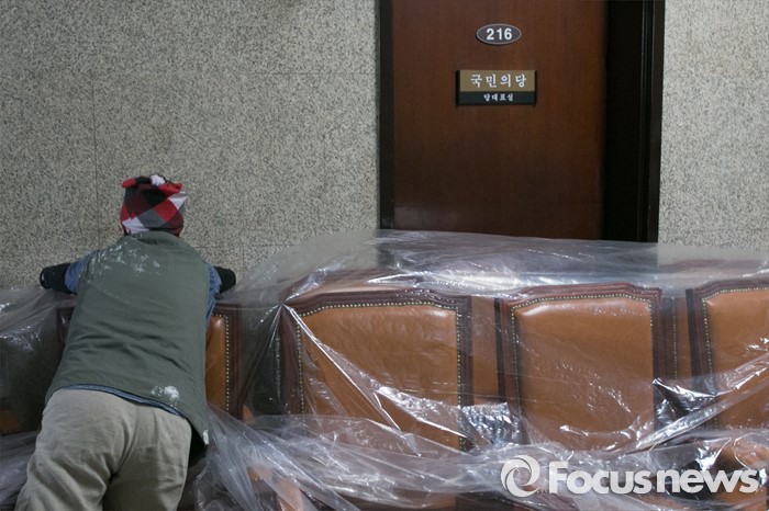 (서울=포커스뉴스) 21일 오전 서울 여의도 국회 본관에서 국민의당 대표실과 원내대표실 등 집무실 공사가 한창 진행되고 있다.