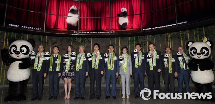 (용인=포커스뉴스) 21일 오전 경기도 용인시 에버랜드에서 열린 '판다월드 개관식'에서 정연만 환경부 차관, 남경필 경기도지사, 미쓰에이 수지, 김종덕 문화체육관광부 장관, 탄광민 중국 국가 임업국 사장(차관급), 김봉영 삼성물산 대표이사 사장, 학효비 주한중국대사관대리대사를 비롯한 참석자들이 기념촬영을 하고 있다.
