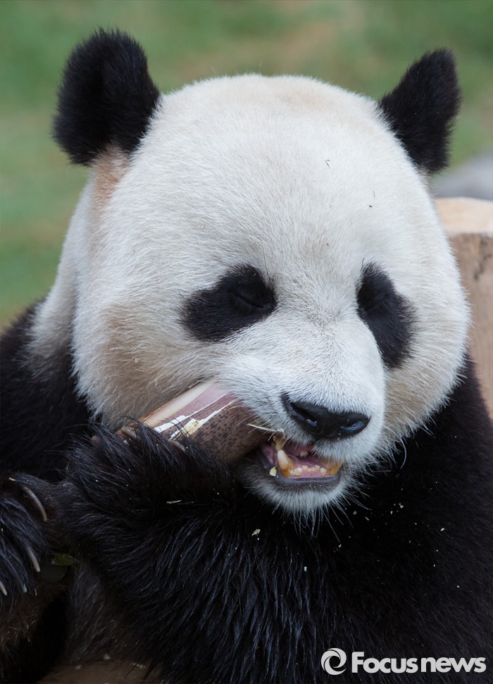 (용인=포커스뉴스) 21일 오전 경기도 용인시 에버랜드에서 열린 '판다월드 개관식'에서 러바오가 먹이를 먹고 있다.
