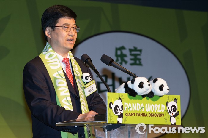 (용인=포커스뉴스) 21일 오전 경기도 용인시 에버랜드에서 열린 '판다월드 개관식'에서 탄광민 중국 국가 임업국 사장(차관급)이 축사를 하고 있다.