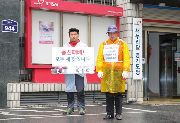(서울=포커스뉴스) 20대 총선에서 경기 수원갑에 출마했다가 낙선한 박종희 새누리당 제2사무부총장이 21일 오전 경기도 수원 경기도당 사무실에서 사죄의 삼보일배를 하고 있다. <사진제공=박종희 전 의원>