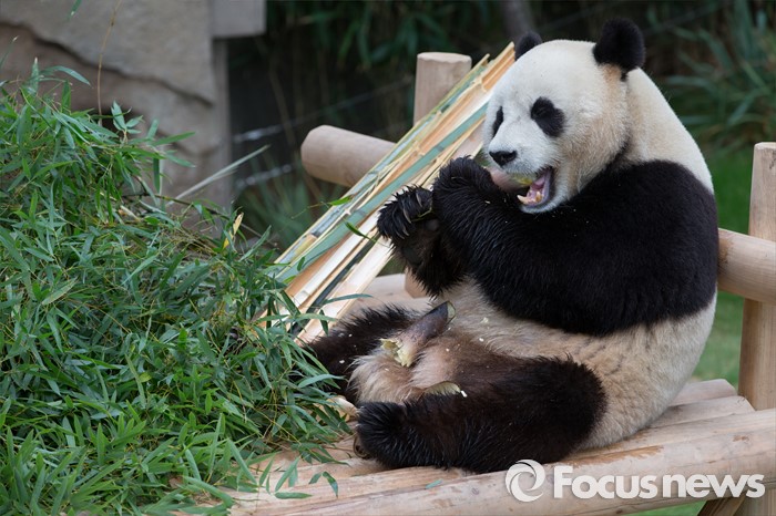 (용인=포커스뉴스) 21일 오전 경기도 용인시 에버랜드에서 열린 '판다월드 개관식'에서 러바오가 먹이를 먹고 있다.