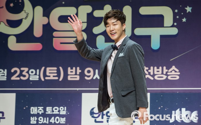 (서울=포커스뉴스) 21일 오후 서울 마포구 JTBC 사옥에서 열린 예능프로그램 '반달친구' 제작발표회에 참석한 아이돌 그룹 위너의 멤버 이승훈이 포토타임을 갖고 있다.