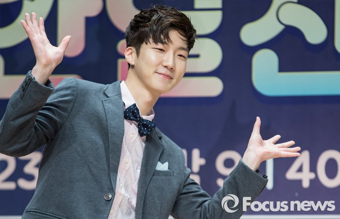 (서울=포커스뉴스) 21일 오후 서울 마포구 JTBC 사옥에서 열린 예능프로그램 '반달친구' 제작발표회에 참석한 아이돌 그룹 위너의 멤버 이승훈이 포토타임을 갖고 있다.