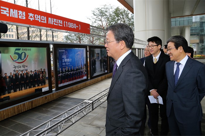 (세종=포커스뉴스) 임환수 국세청장을 비롯한 국세청 직원들이 21일 정부세종2청사 국세청 내 조세박물관에서 열린 국세청 개청 50주년 특별전 개관식을 마친 뒤 전시장을 둘러보고 있다. <사진제공=국세청>