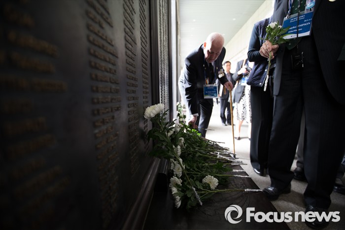 | △ 전쟁기념관 방문, 헌화하는 영연방 참전용사 |