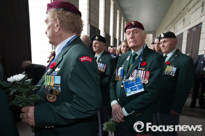 (서울=포커스뉴스) 임진강 및 가평전투 65주년을 맞은 21일 오후 서울 용산구 전쟁기념관에서 6.25전쟁에 참전했던 영연방(영국, 캐나다, 호주, 뉴질랜드) 참전용사들이 헌화를 하고 있다.