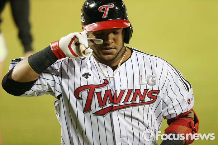 (서울=포커스뉴스) 21일 서울 잠실구장에서 열린 2016 프로야구 NC-LG 경기 4회말 LG 히메네스가 서상우의 홈런에 이어 좌월 1점홈런을 치고 홈인하고 있다.
