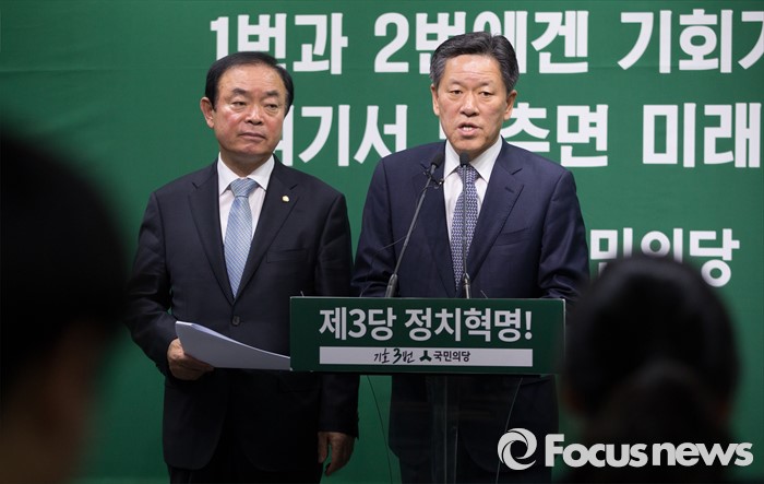 (서울=포커스뉴스) 주승용 국민의당 원내대표(오른쪽)와 장병완 정책위의장이 22일 서울 마포 당사 브리핑룸에서 19대 국회 쟁점법안을 발표하고 있다.