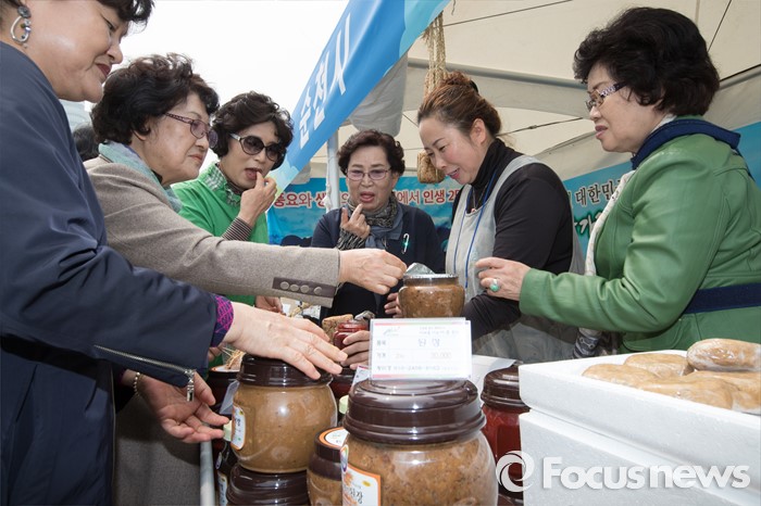 (서울=포커스뉴스) 22일 오전 서울 광화문 광장에서 열린 '2016 광주·전남 귀농귀촌 박람회' 순천시 부스에서 참석자들이 된장, 고추장을 비롯한 다양한 상품들을 시식하고 있다.
