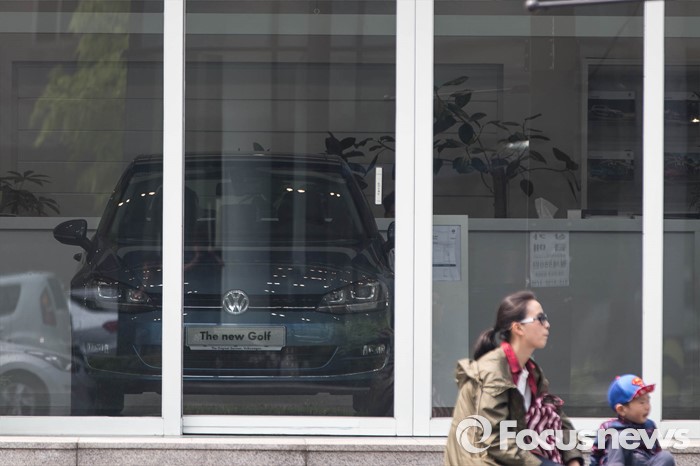(서울=포커스뉴스) 폭스바겐이 배출가스 조작으로 미국 소비자들에게 최소 10억달러를 배상하기로 한 22일 오전 서울 강남일대 폭스바겐 전시장에 차량들이 전시돼있다.