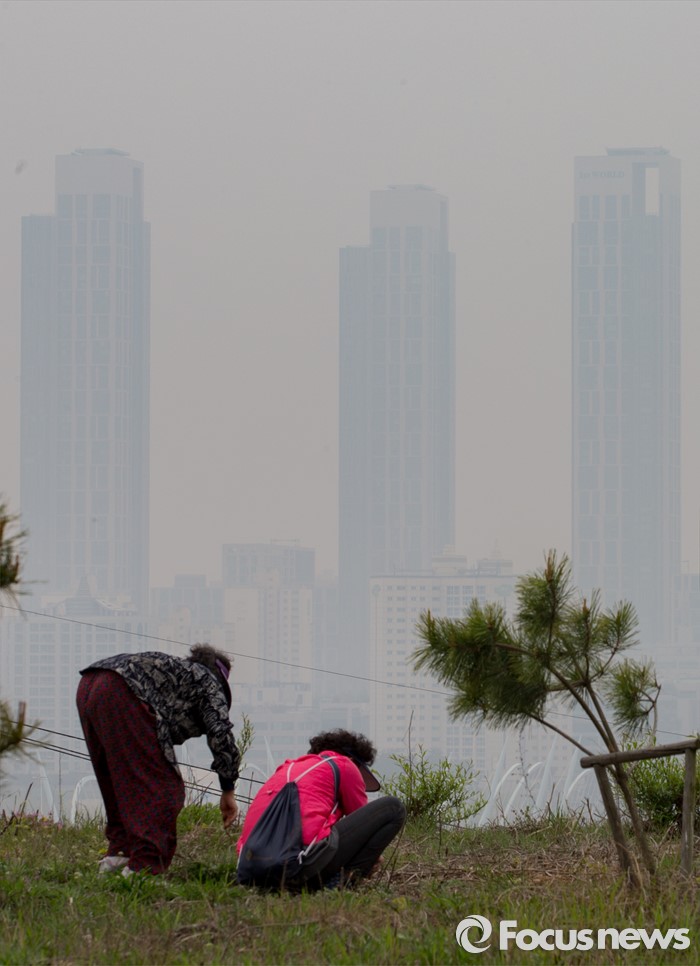 (인천=포커스뉴스) 몽골과 중국 북부에서 발생한 황사가 서해안으로 유입된 22일 오후 인천시 연수구 동춘터널에서 바라본 송도국제도시가 황사와 안개에 갇혀 있다.