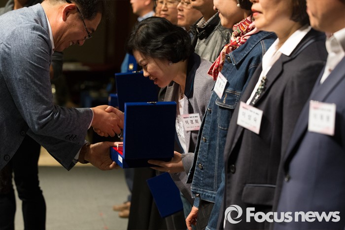 (서울=포커스뉴스) 22일 오후 서울 용산구 백범기념관에서 열린 사회복지사협의회 창립 30주년 기념행사에서 장재구 사회복지사협회 회장이 공로패를 사회복지사들에게 전달하고 있다.