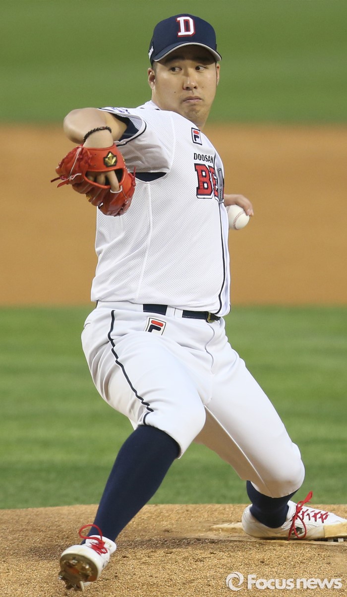 (서울=포커스뉴스) 22일 서울 잠실구장에서 열린 2016 프로야구 한화-두산 경기에서 1회초 두산 선발투수 유희관이 투구하고 있다.