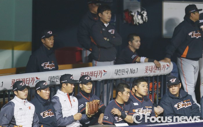(서울=포커스뉴스) 22일 서울 잠실구장에서 열린 2016 프로야구 한화-두산 경기에서 역전당한 한화 덕아웃에 침울한 기운이 감돌고 있다.