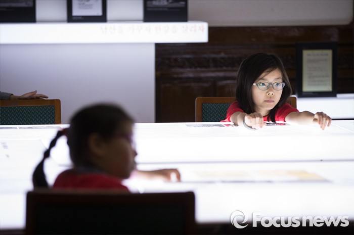 (서울=포커스뉴스) 세계 책의 날을 하루 앞둔 22일 오후 어린이들이 서울 중구 서울도서관을 견학하고 있다.