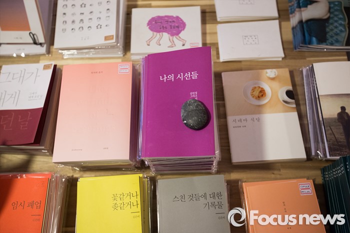 (서울=포커스뉴스) 세계 책의 날을 하루 앞둔 22일 오후 서울 마포구 이대역 인근의 독립 책방 '퇴근길 책한잔'에 다양한 독립 출판물들이 진열되어 있다.