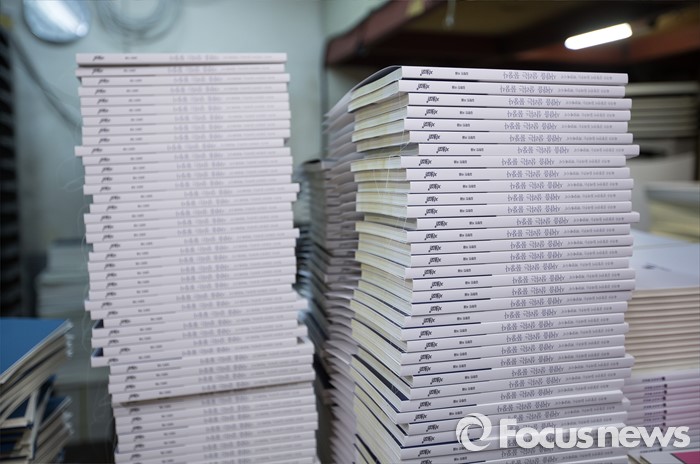 (서울=포커스뉴스) 세계 책의 날을 하루 앞둔 22일 오후 서울 중구 충무로의 한 인쇄소에 완성된 책들이 쌓여져 있다.