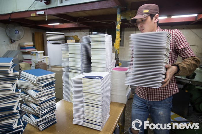 (서울=포커스뉴스) 세계 책의 날을 하루 앞둔 22일 오후 서울 중구 충무로의 한 인쇄소에서 책을 정리하고 있다.