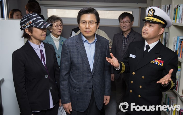 | △ 세계 책의 날, 병영독서카페 둘러보는 황교안 |