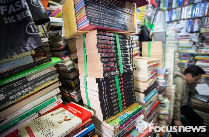 (서울=포커스뉴스) 세계 책의 날인 23일 오전 서울 중구 청계6가 평화시장 인근의 한 헌책방에 팔리지 않은 헌책들이 빼곡히 쌓여 있다. 청계 6가 헌책방거리는 1970년대 점포수가 200여 개에 달할 정도로 성황이었지만 현재는 25곳 정도 밖에 남아 있지 않다.