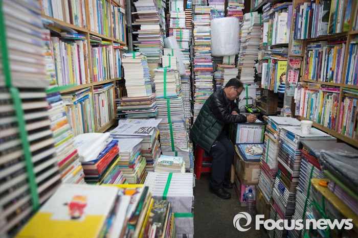 (서울=포커스뉴스) 세계 책의 날인 23일 오전 서울 중구 청계6가 평화시장 인근의 한 헌책방에서 책방 주인이 장부를 보고 있다. 청계 6가 헌책방거리는 1970년대 점포수가 200여 개에 달할 정도로 성황이었지만 현재는 25곳 정도 밖에 남아 있지 않다.