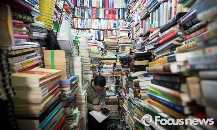 (서울=포커스뉴스) 세계 책의 날인 23일 오전 서울 중구 청계6가 평화시장 인근의 한 헌책방에서 가게 주인이 계산기를 두드리고 있다. 청계 6가 헌책방거리는 1970년대 점포수가 200여 개에 달할 정도로 성황이었지만 현재는 25곳 정도 밖에 남아 있지 않다.