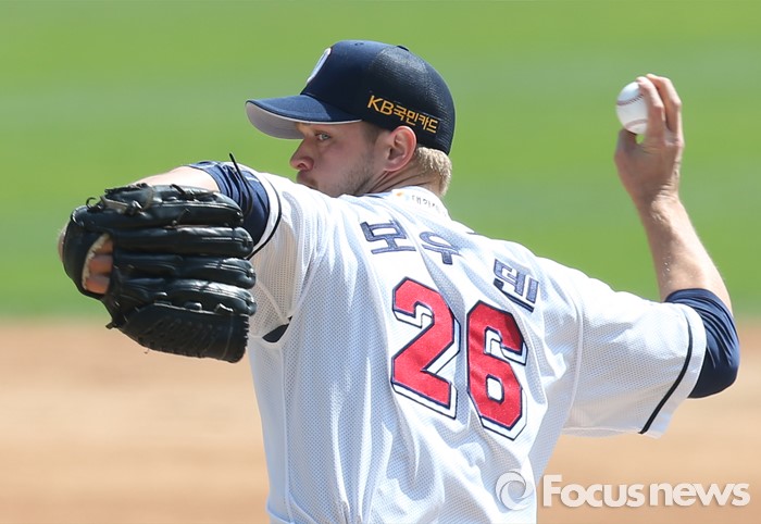 | △ 투구하는 두산 선발투수 보우덴 |