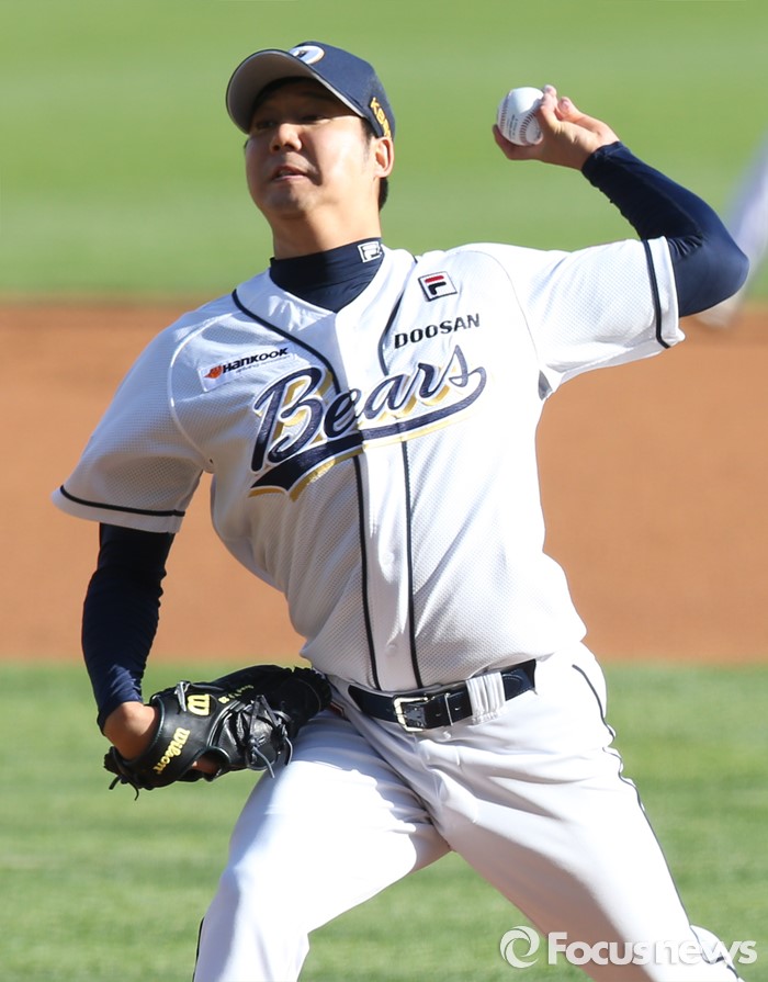 (서울=포커스뉴스) 24일 서울 잠실구장에서 열린 2016 프로야구 한화-두산 경기에서 1회초 두산 선발투수 장원준이 투구하고 있다.