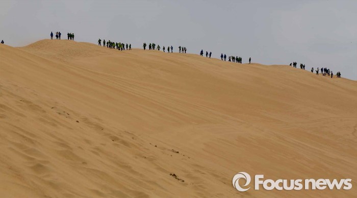 (다라더치/중국=포커스뉴스) 24일 오전 중국 내몽고 다라더치 쿠부치사막에서 한ㆍ중ㆍ일 대학생들로 구성된 2016 미래숲 15기 녹색봉사단원들이 사막트래킹을 하고 있다. 미래숲 녹색봉사단은 이번 봉사활동을 통해 황폐화된 사막에 나무 심기 및 각국 청년들과 우호를 증진을 위한 교류 활동을 전개할 예정이다.