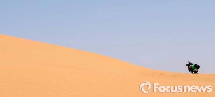 (다라더치/중국=포커스뉴스) 24일 오전 중국 내몽고 다라더치 쿠부치사막에서 한ㆍ중ㆍ일 대학생들로 구성된 2016 미래숲 15기 녹색봉사단원들이 사막트래킹을 하고 있다. 미래숲 녹색봉사단은 이번 봉사활동을 통해 황폐화된 사막에 나무 심기 및 각국 청년들과 우호를 증진을 위한 교류 활동을 전개할 예정이다.