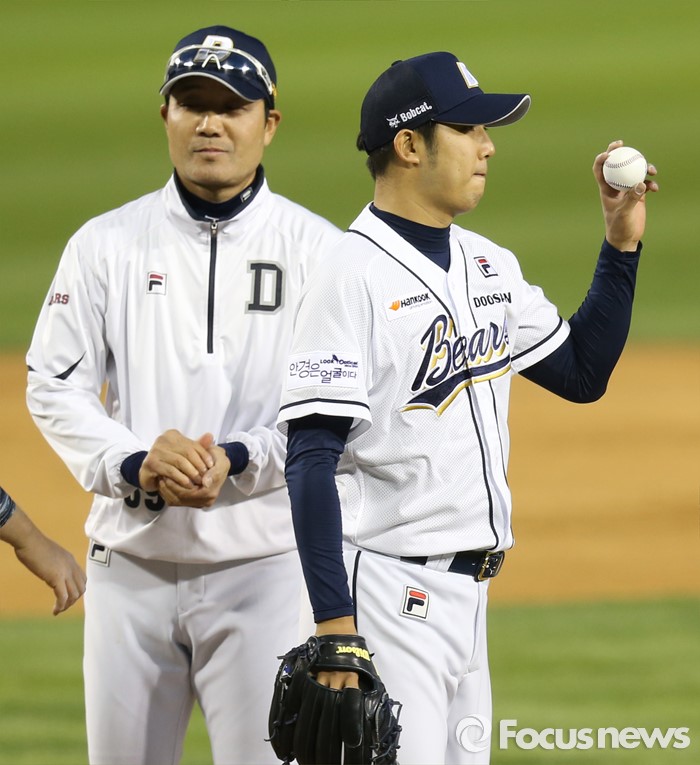 (서울=포커스뉴스) 24일 서울 잠실구장에서 열린 2016 프로야구 한화-두산 경기에서 두산 선발투수 장원준이 7회 1사후 주자를 내보내고 마운드를 내려가고 있다.