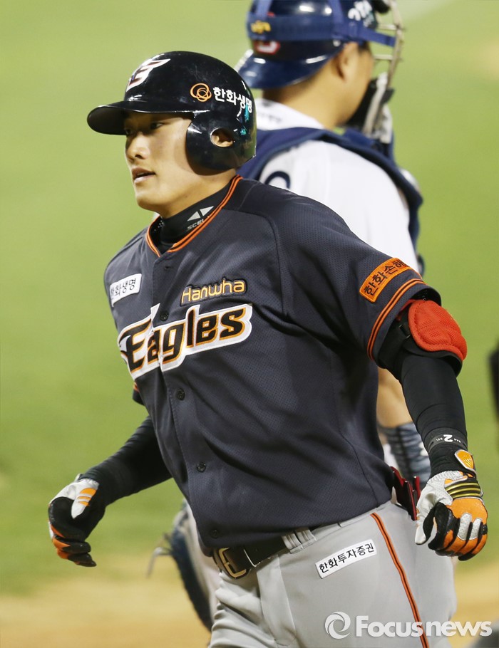 (서울=포커스뉴스) 24일 서울 잠실구장에서 열린 2016 프로야구 한화-두산 경기 9회초 한화 선두타자 신성현이 좌월 솔로 홈런을 치고 홈인하고 있다.