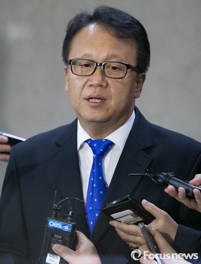 (서울=포커스뉴스) 민병두 더불어민주당 의원이 29일 오후 서울 여의도 국회 정론관에서 원내대표 출마 기자회견을 마친 뒤 취재진 질문에 답하고 있다.
