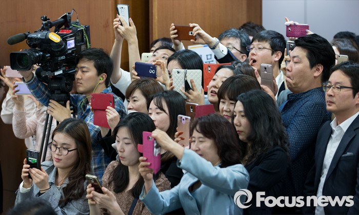 | △ 조인성과 최지우 기념촬영하는 국세청 직원들 |