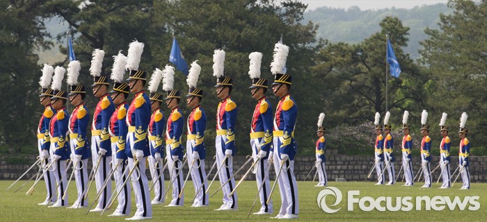 (서울=포커스뉴스) 29일 오후 서울 노원구 육군사관학교에서 열린 개교 70주년 기념식에서 생도들이 도열하고 있다.